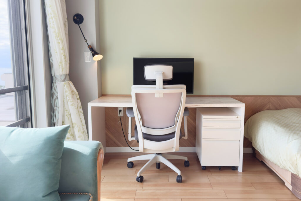 This is a room for long-term stay where you can stay comfortably while doing desk work.