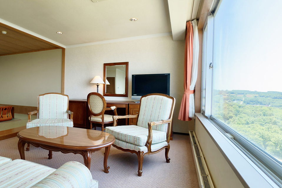 Enjoy a blissful time overlooking Sea of Okhotsk in a high-quality Japanese and Western space.