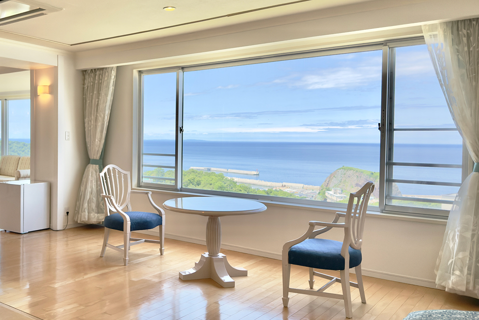 Enjoy a blissful time overlooking Sea of Okhotsk in a high-quality Japanese and Western space.