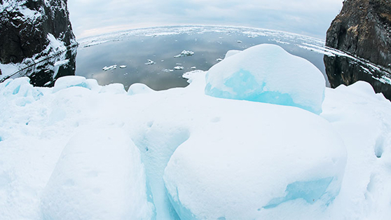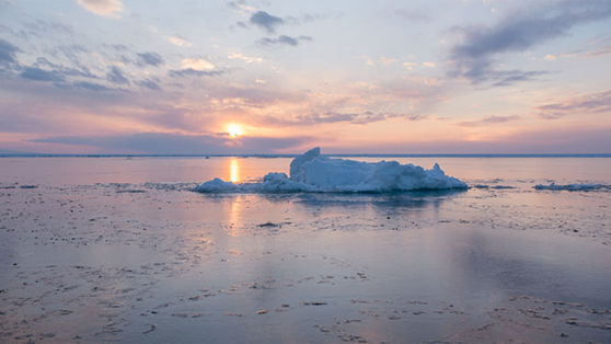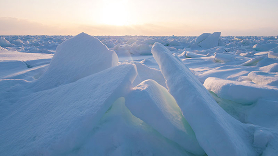 The drift ice spreading on the magnificent scale of Sea of Okhotsk blows in the wind around the mouth of Amur in Russia, about 1,000 km away from Hokkaido, and rushes along the coast of Sea of Okhotsk while gradually growing on the current.
